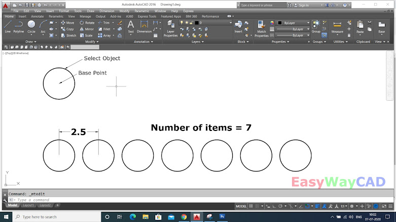 Specify base point or [Displacement / mOde]: click on the center of a circle (shown in above fig.)